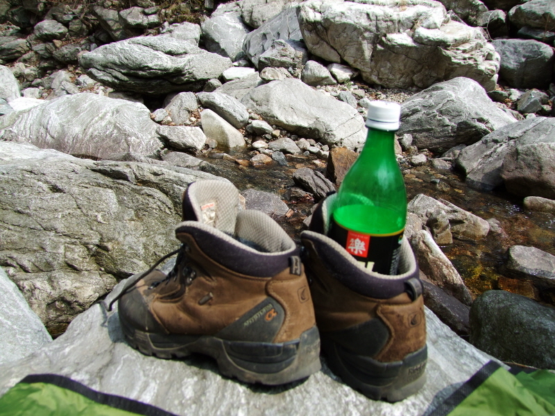 요래 바닥이 고르지 못한 곳에서는 막걸리 받침대로써 훌륭한 등산화...(너무 차가운 막걸리는 비추!)