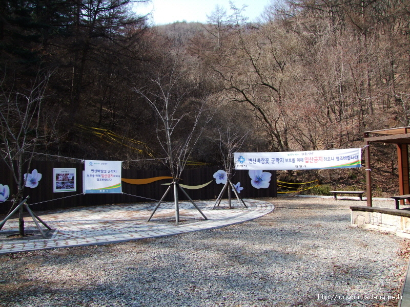 예상은 했지만, 변산바람꽃 군락지는 많은 이들의 방문으로 몸살을 앓고 있어 출입을 통제하고 있네요.