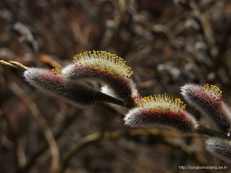 갯버들 - 갯버들이 꽃을 피우기 시작했네요. 빨간 꽃이 참 이뻐요.