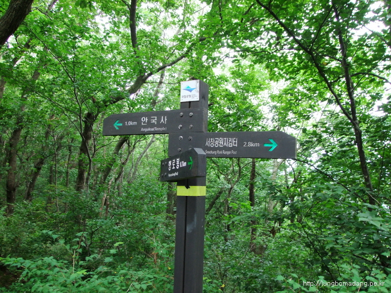 12:08 갈림길입니다. 여기서 향로봉 잠시 들려 가실께요. 왕복 1.4Km입니다. 여기서부터는 길이 편합니다. ^.^