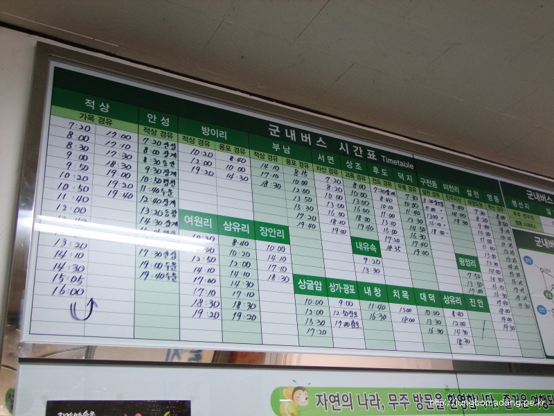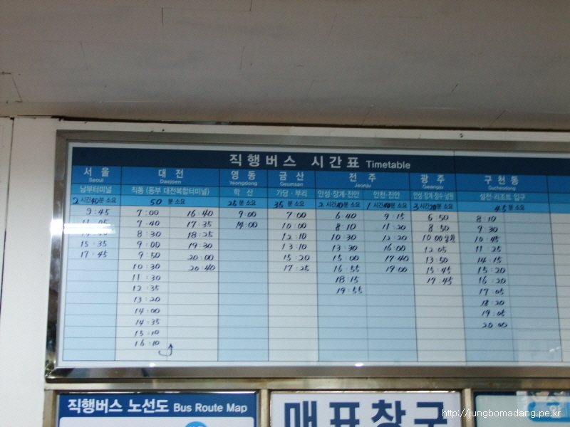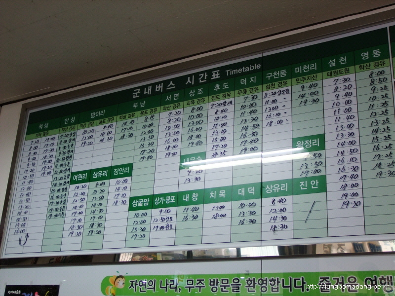 전 무주터미널에서 적상면으로 지나가는 10시 50분 버스를 이용하려 했기 때문에 무주터미널에 10시 20분에 도착하는 직통 버스를 이용하기로 합니다.