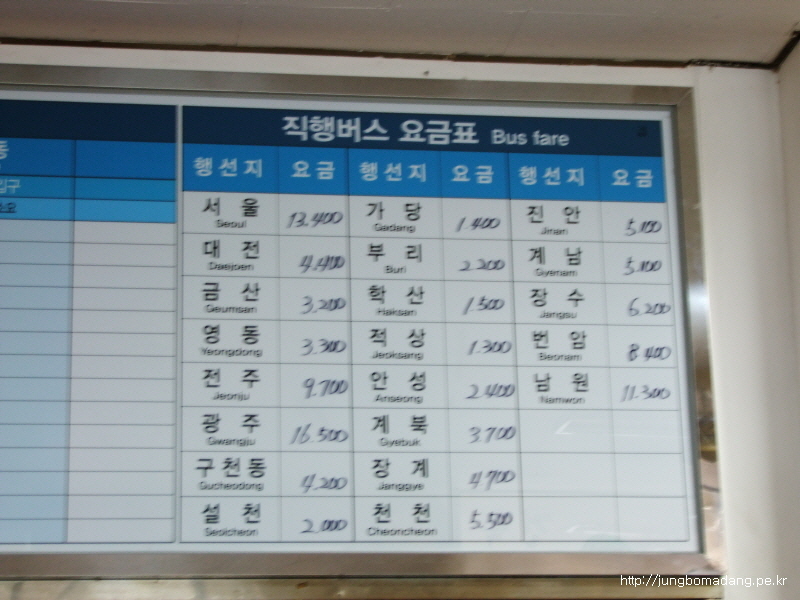 아참 서울에서 무주 직통은 13400원 되겠습니다.