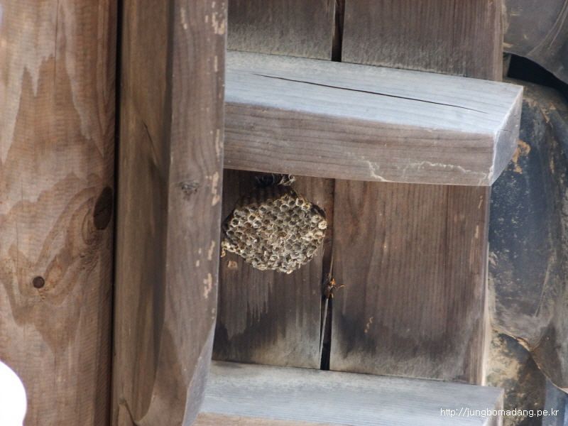 의자에 앉아 여기 저기 둘러봅니다. 풍경소리도 들리고, 바람도 시원하고 평화롭네요... 벌집도 보입니다.