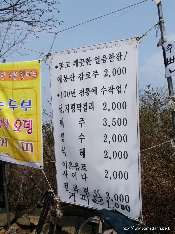 11:36 정상 임박! 매점 가격표네요. ㅎㅎ