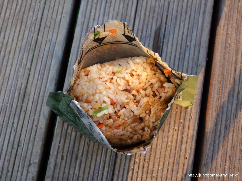 그리곤 보온병에 담아온 뜨거운 물로 전투식량을 섭취하는 데, 아뿔사... 수저가 없네요. ㅋㅋㅋ 어쩔수 없이 봉지를 오무려가면서 재주껏 먹습니다.