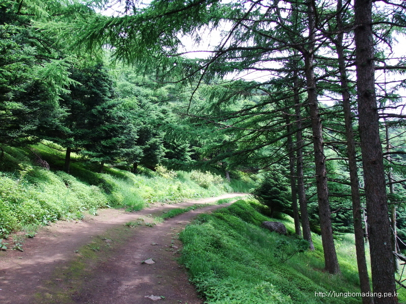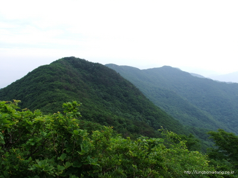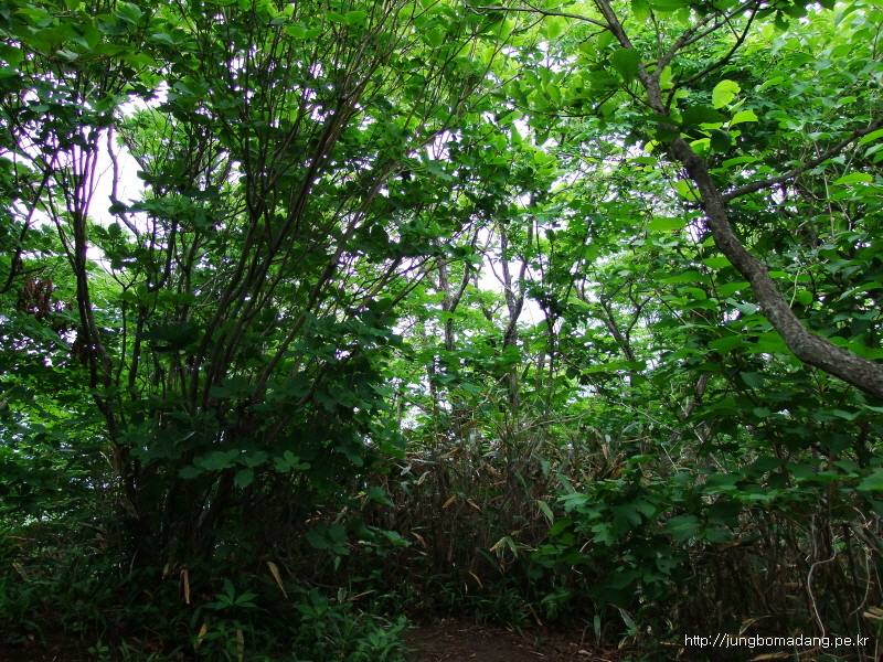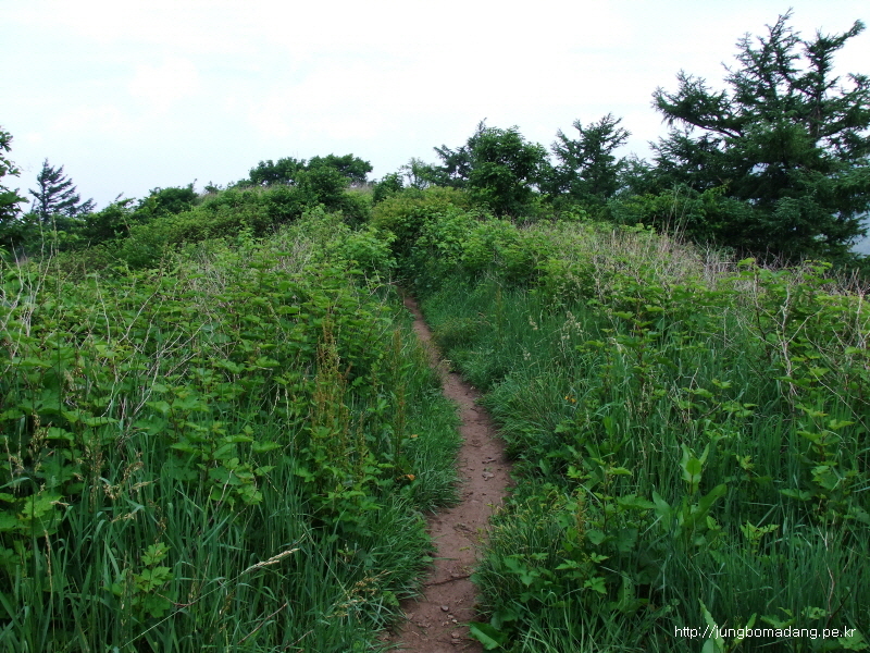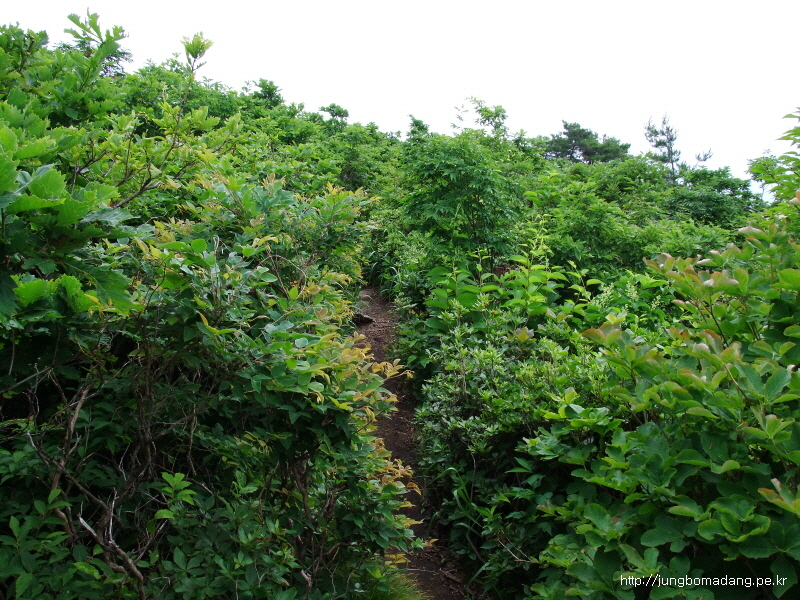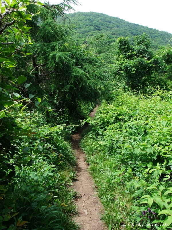 서북능선은 비오거나 안개가 끼었을 때 별로 추천하고 싶지 않습니다. 이런 조릿대길처럼 좁은 길을 상당수 지나야하는 데, 그 잎사귀에 있는 물기가 몸에 묻어서 몸이 온통 젖곤 하거든요... 글고 싸구려 우비는 하나 마다 더라구요... 이런 구간 지나면, 찢기고 그럽니다.