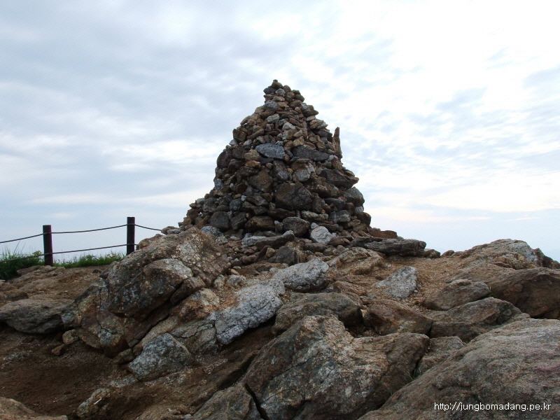 카메라 줌으로 땡겨보니 만복대의 뾰족한 돌탑이 보입니다.
