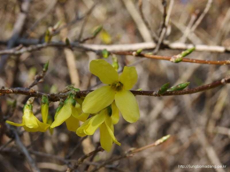 개나리가 이제서야 피다니....