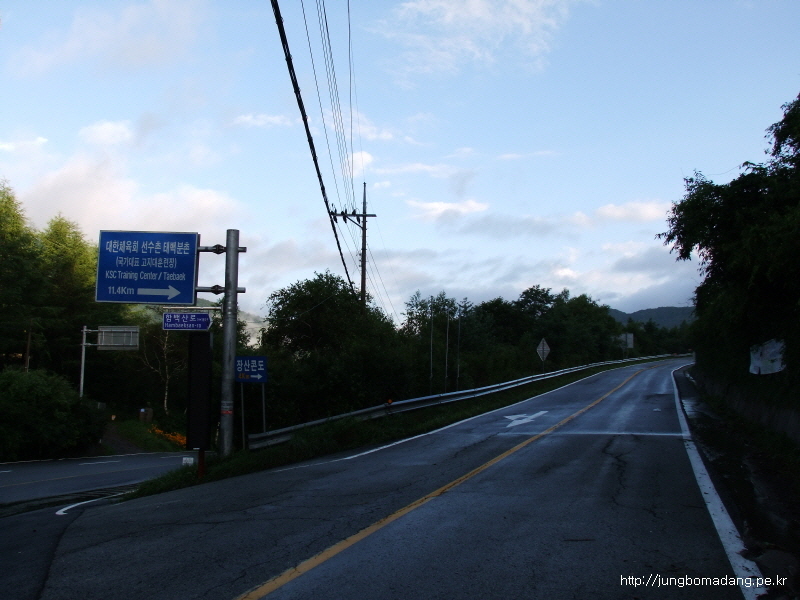 08:20 만항재 도착! 함백산으로 가려면 만항재쪽으로 가지 말고 우측 내리막 도로를 따라가면 된다.