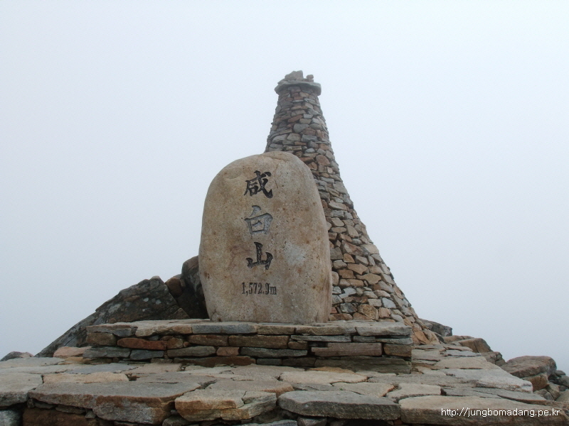 09:33 함백산 정상이닷! 뭔 첨성대 비스므리한 돌탑을 세워놨군?