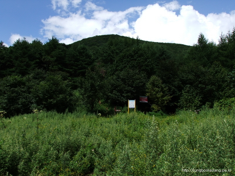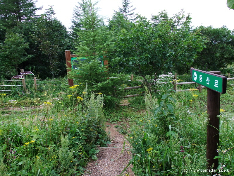 09:03 뭔 이정표가 이리도 많노? 자~ 직진하면 그냥 도로따라 1.8Km, 우측 등산로를 따라가면 1.2Km 오올~ 당연히 짧은곳으로 가야지? 하지만, 아셔야할것은 길이 상대적으로 짧다는 건 경사가 그만큼 가파르고 힘들다는 사실! 어쨌던 이몸은 야생화를 봐야하니 우측길을 선택한다~