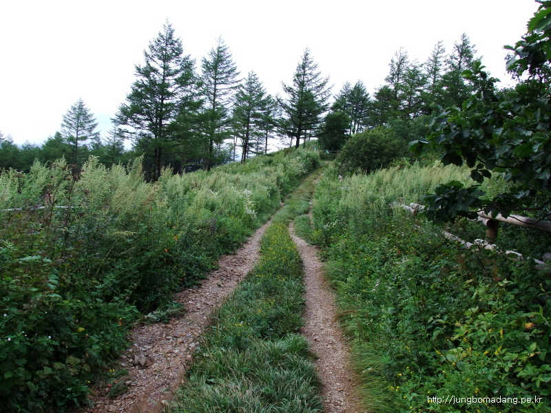12:36 삼거리. 여가 아까 금대봉 오르는 길하고 갈라지는 길과 만나는 길이다. 경사가 급해서 발꼬락이 꽤 아팠다...