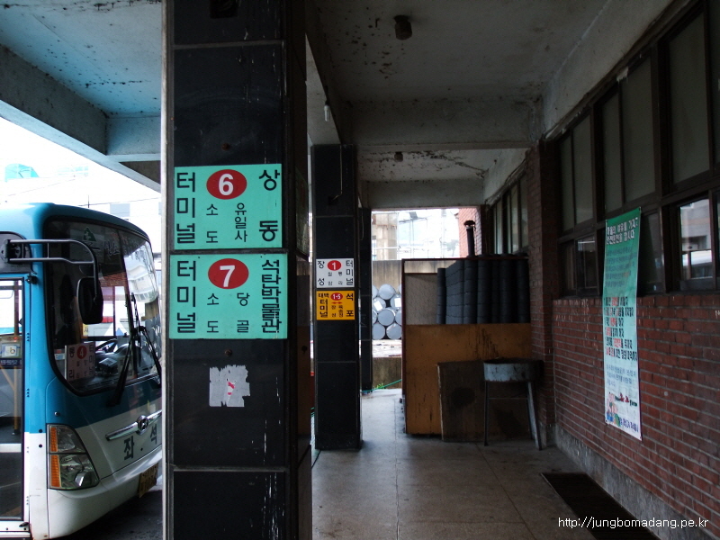 화방재를 경유하는 버스(6번) 타는 곳