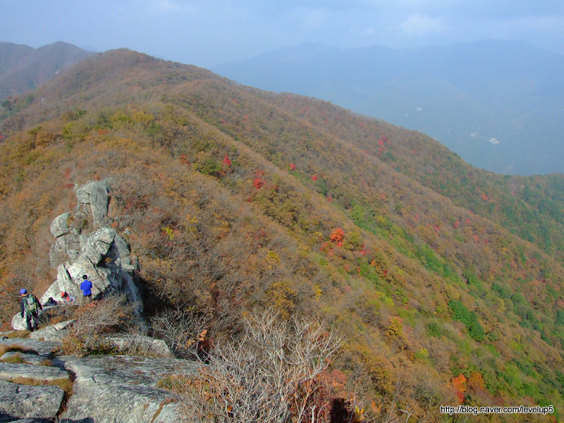 넉넉치 않고 확실치 않은 이정표 덕에 여러 산악회들의 리본들을 찾아가며,