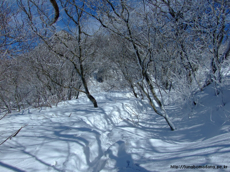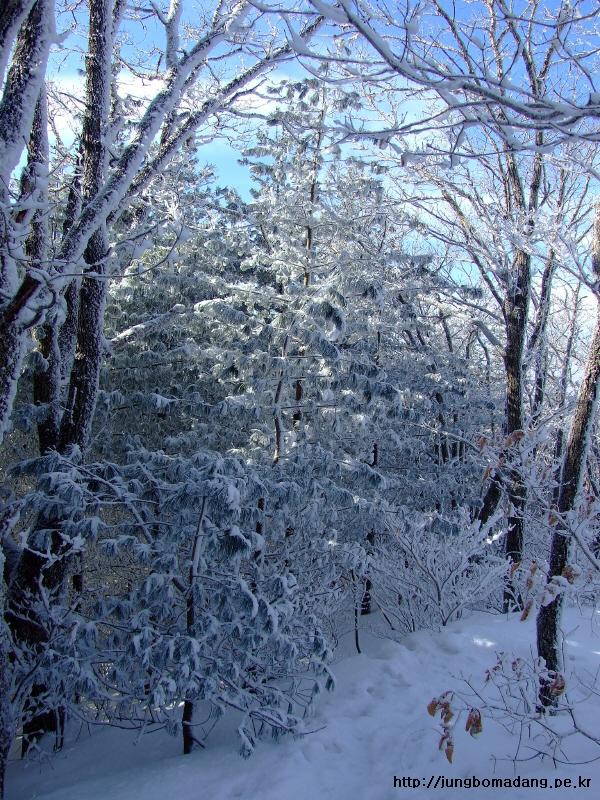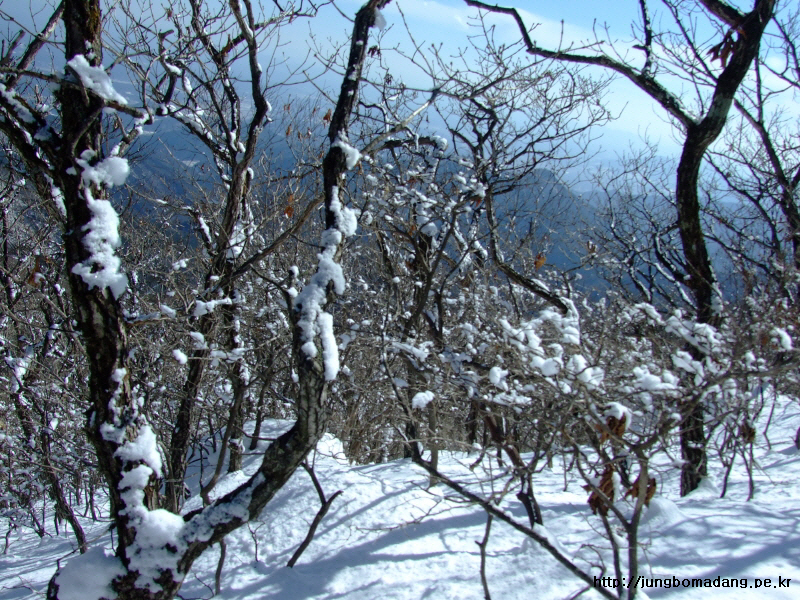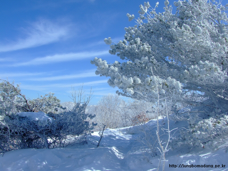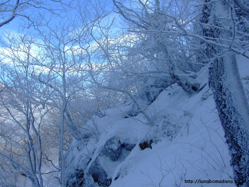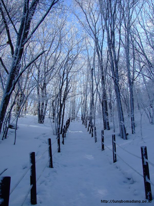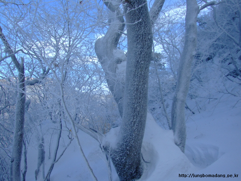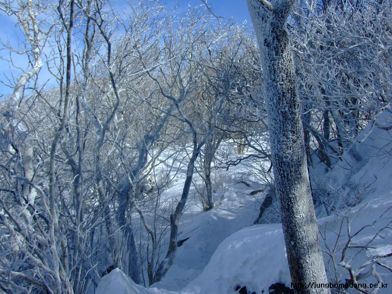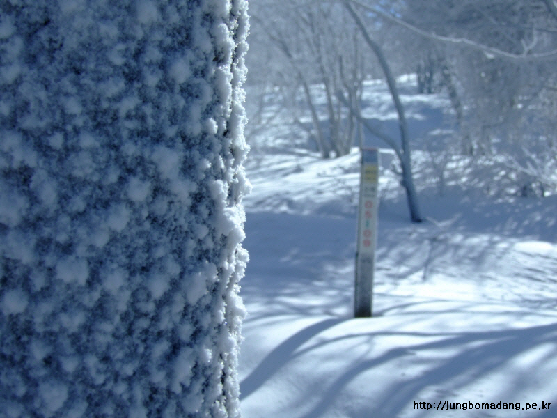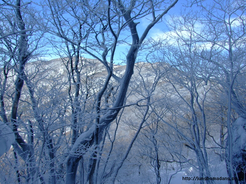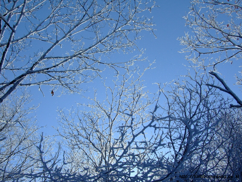저 위에 능선에 하얀 상고대들이 나에게 빨리 오라고 재촉하는 듯 하다.