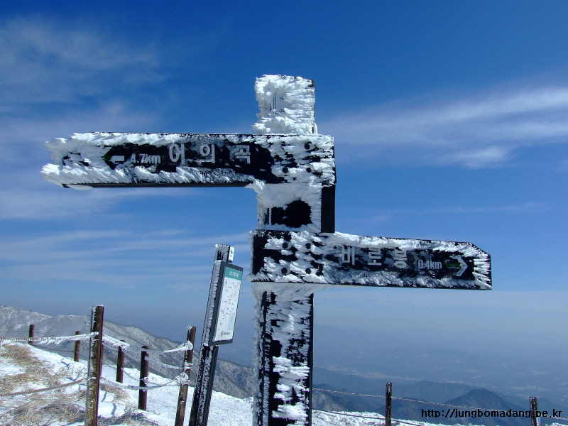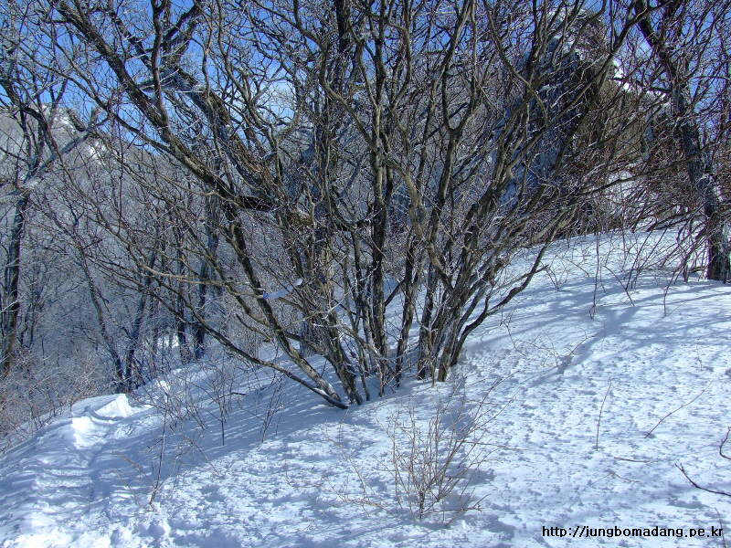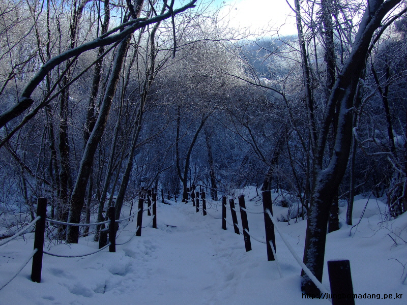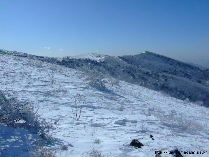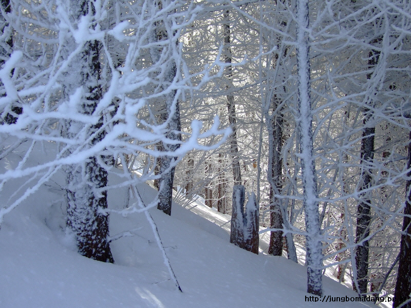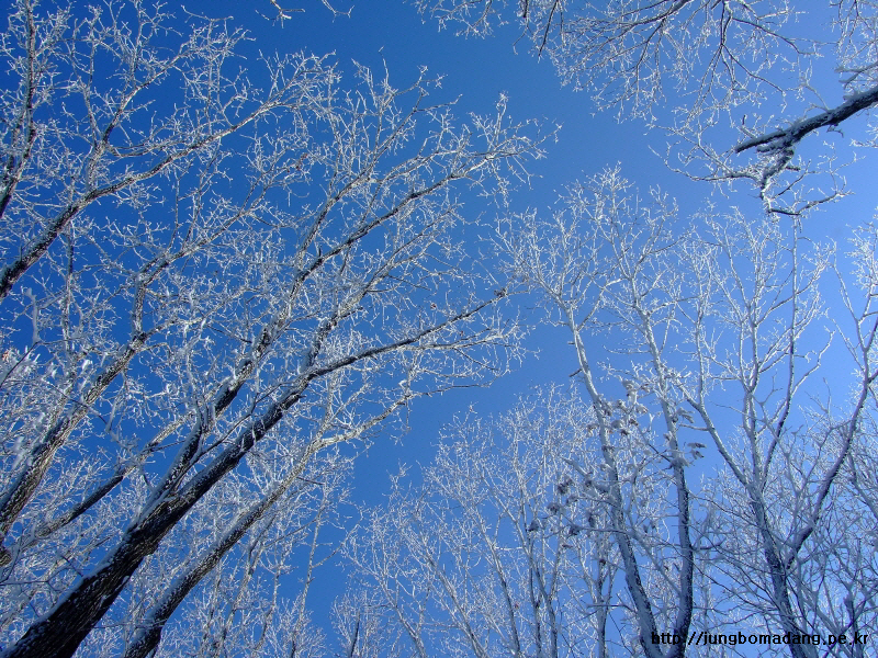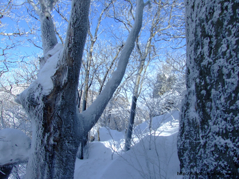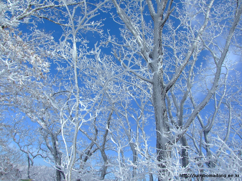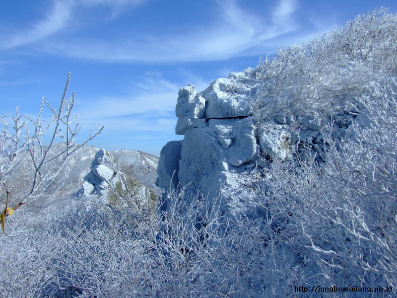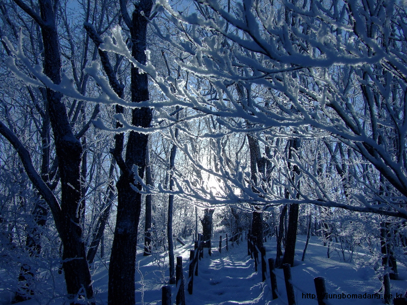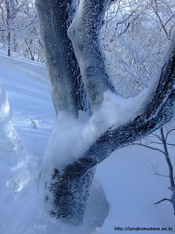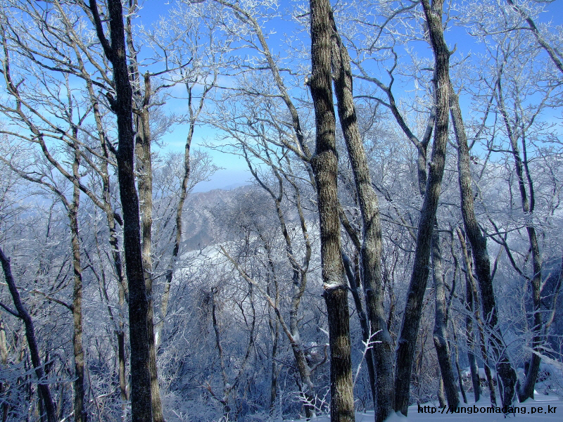 저 위에 능선에 하얀 상고대들이 나에게 빨리 오라고 재촉하는 듯 하다.