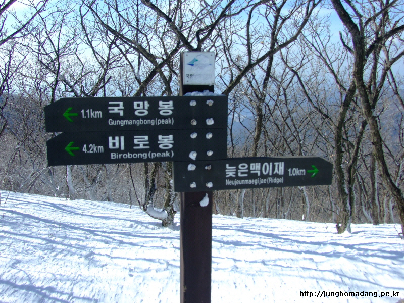 근데 희안한 것은 비로봉을 내려오고 국망봉쪽으로 진행하니 바람이 덜 느껴진다... 아마 그쪽 지역이 제일 바람이 심했던 것 같다.