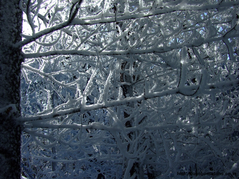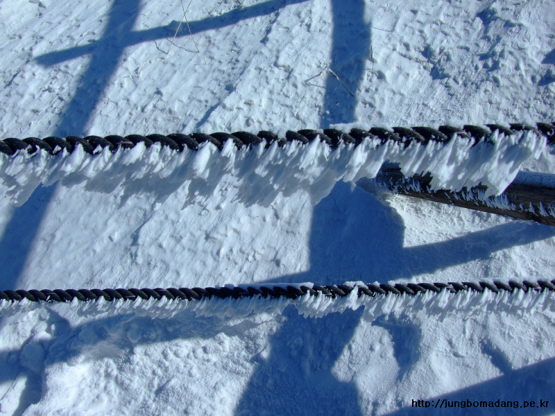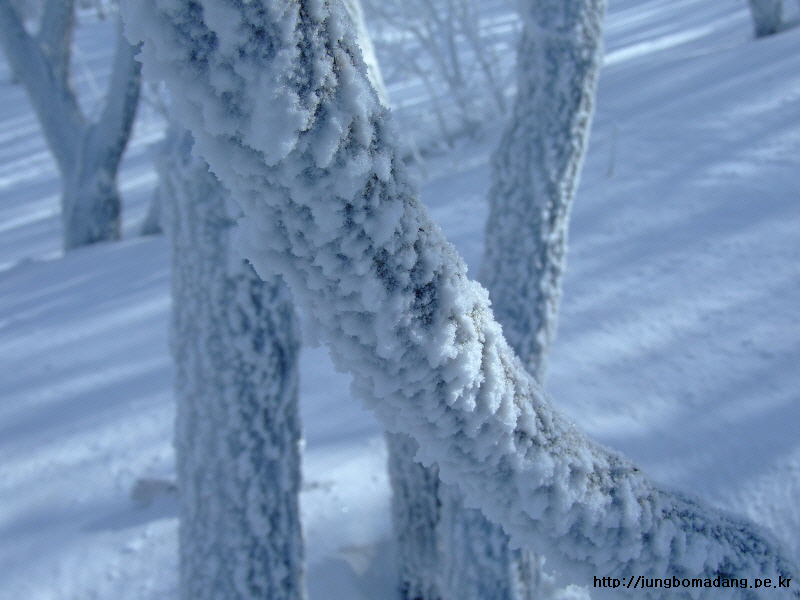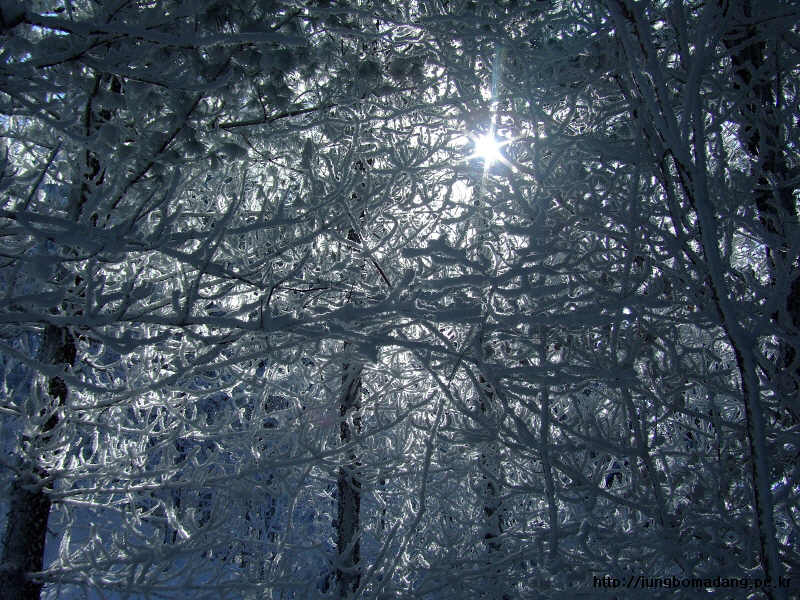 따땃하게 해가 비치는 곳은 상고대가 약간 녹거나 아예 없는 곳도 있다.