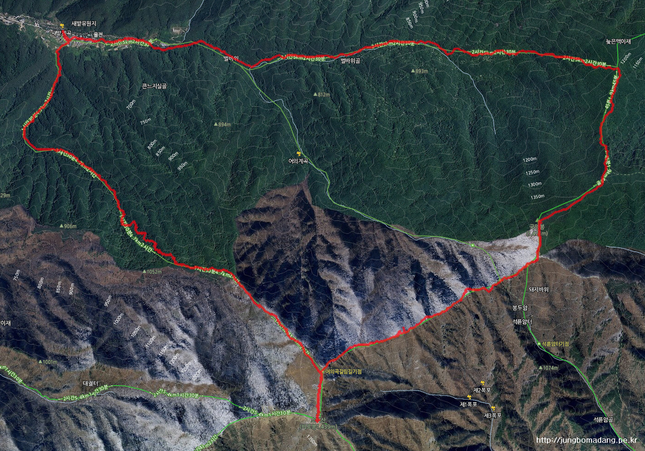 코스 : 어이곡(새밭계곡)-비로봉-국망봉-늦은맥이재-을전-새밭계곡