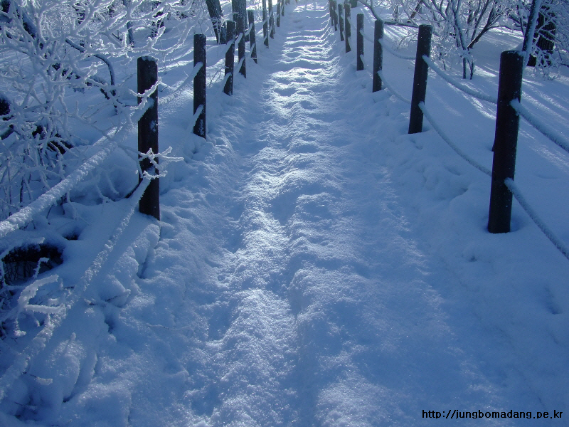 어젯밤에 눈이 살짝 내렸는지 새로온 눈이 살짝 덮혀있고, 중요한 것은, 내가 처음이다!