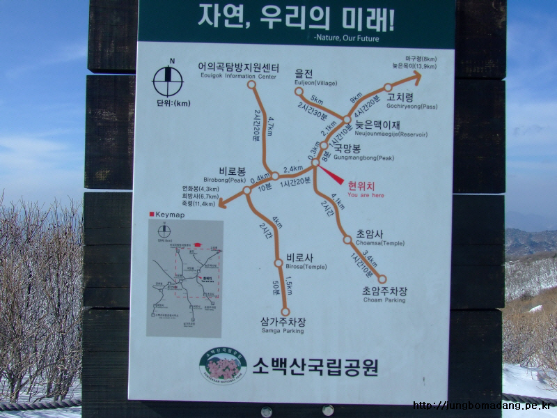 오늘 다녀온 코스는 어이곡(새밭계곡) 부터 시작해서 비로봉, 국망봉 찍고 되돌아오는 원형 코스를 대중교통으로 다녀오게되었다.