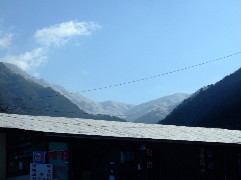 아래 사진은 비로봉식당으로 도로는 그 건물 좌측으로 계속 이어지고 끝에는 을전 통제소가 있다. 하지만 지금은 비로봉으로 가야하므로 반드시 식당을 보고 우측에 산길(등산로)를 이용해야 한다.