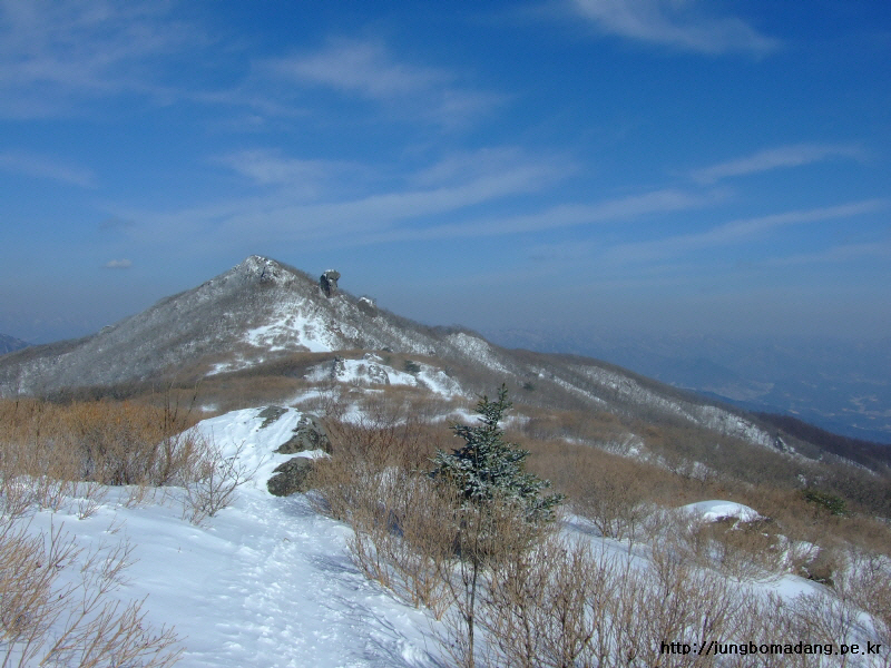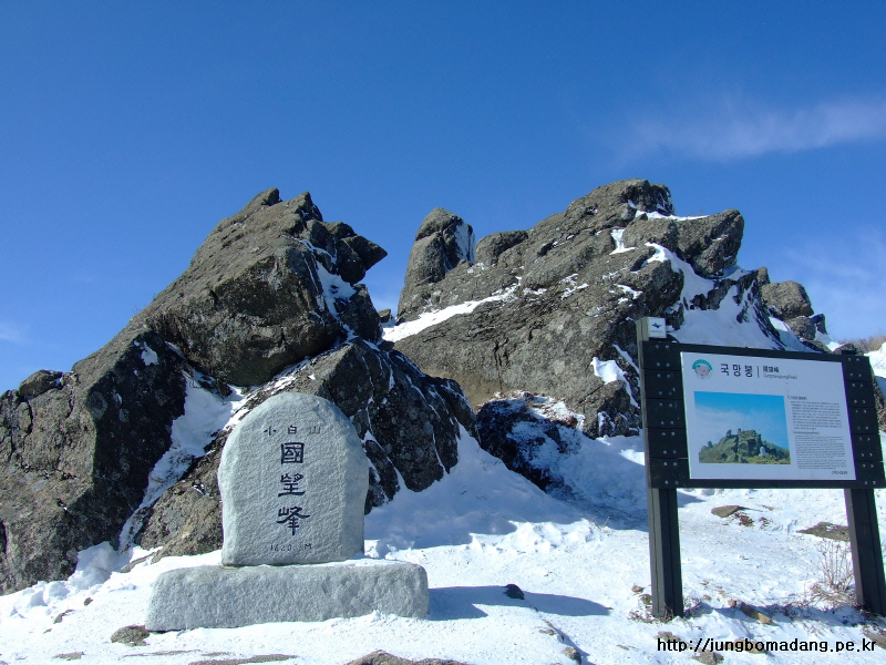 다행히 아주 명당(바위가 바람을 막아주는)자리가 있어 사발면 하나를 꿀맛같이 때워주고, 가져간 막걸리는 손도 못대고 그냥 국망봉으로 향한다.