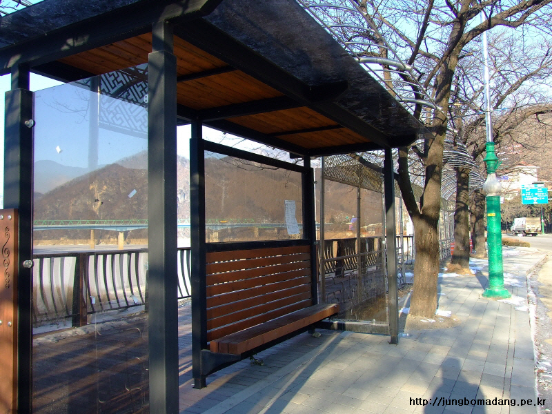 햇볕 때문에 잘 보이진 않지만, 현재 가야되는 정류장의 반대편 정류장이 희미하게 보인다.