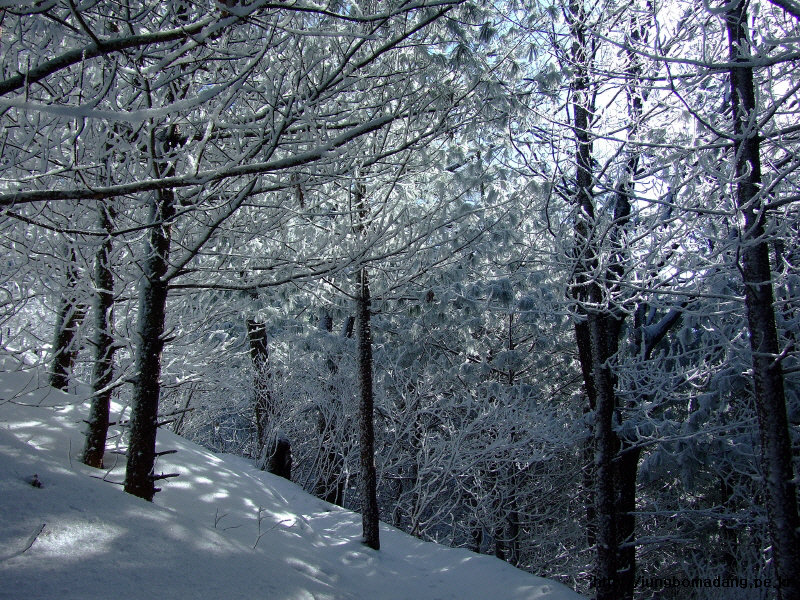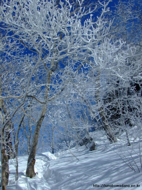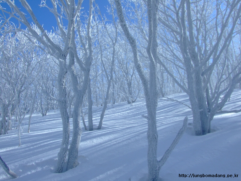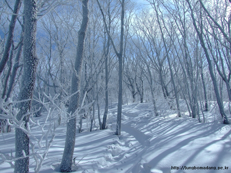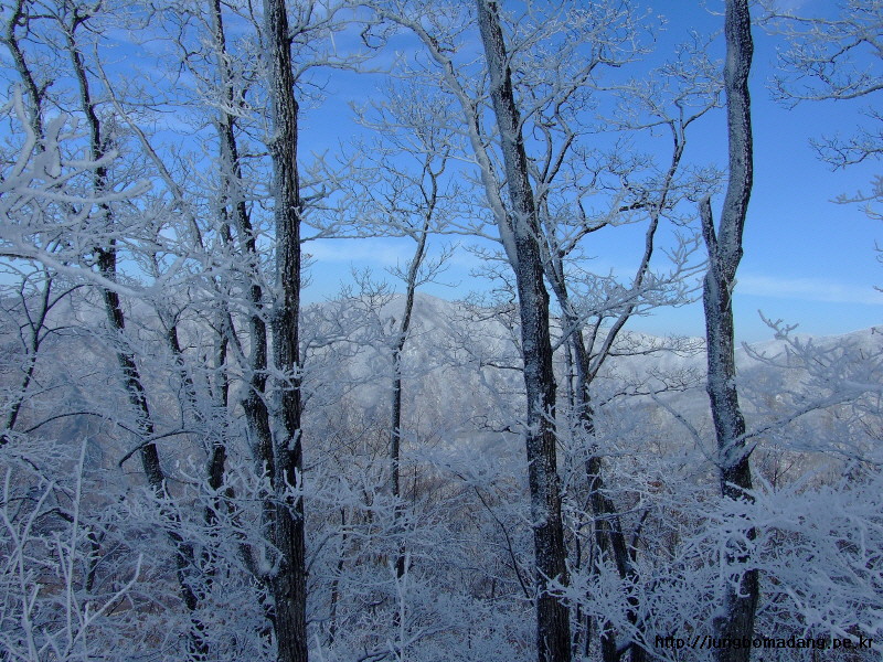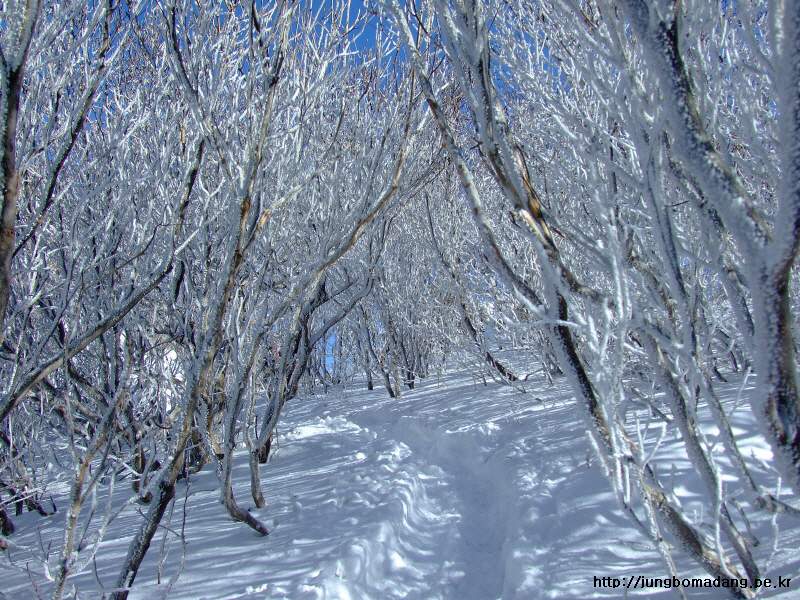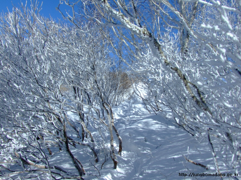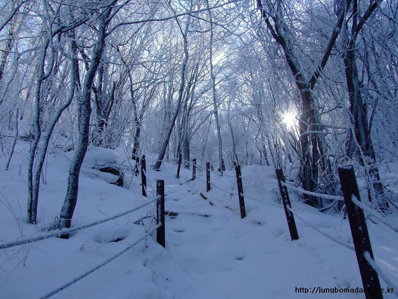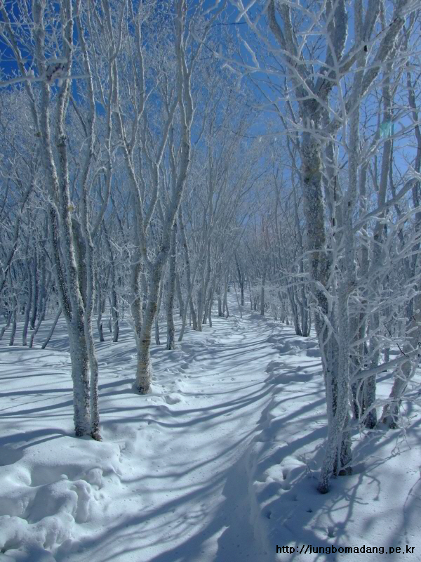저 위에 능선에 하얀 상고대들이 나에게 빨리 오라고 재촉하는 듯 하다.