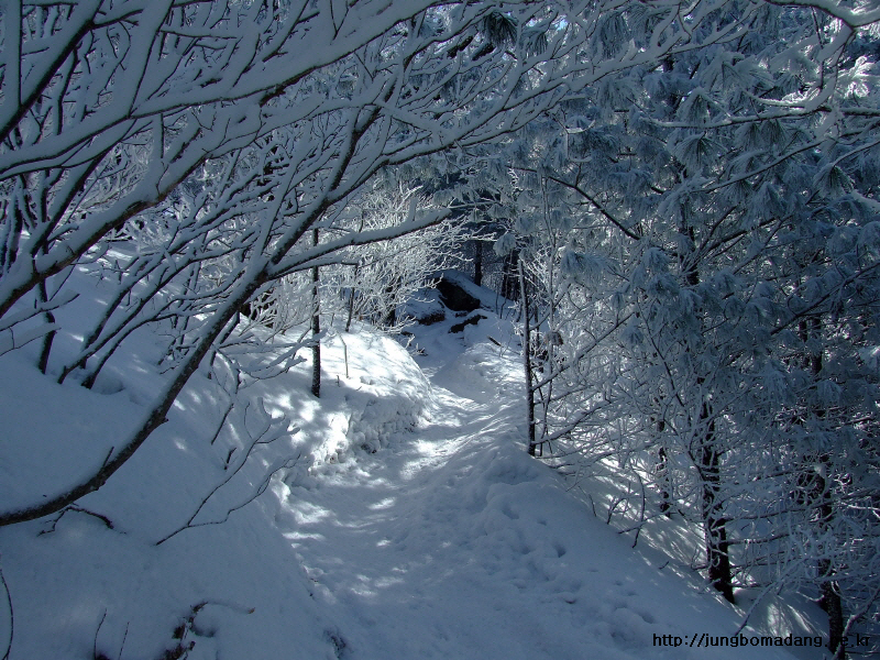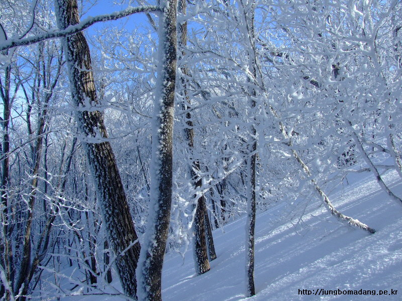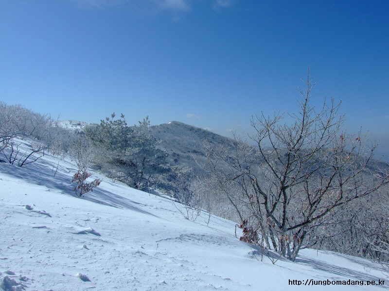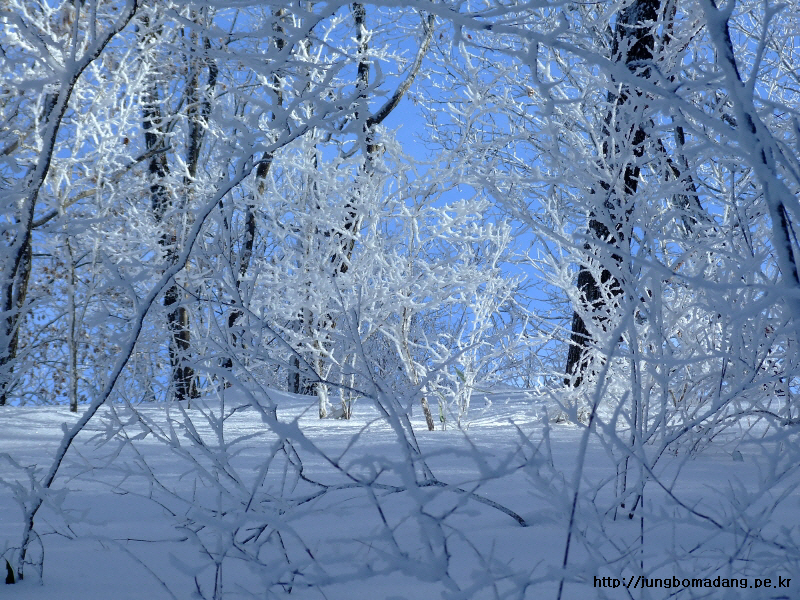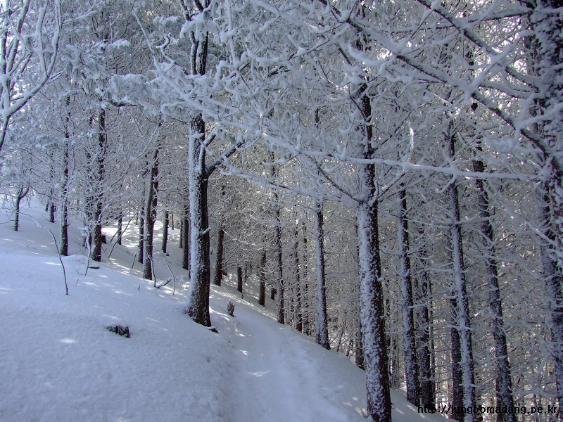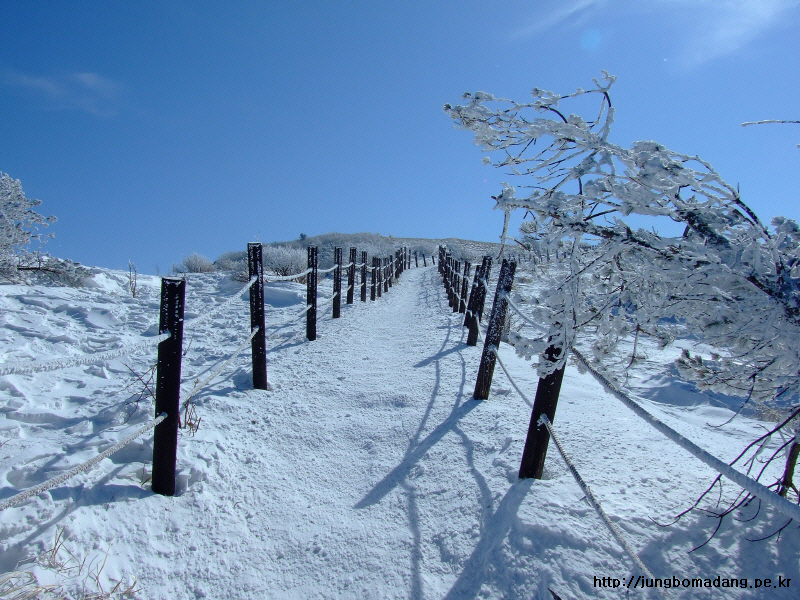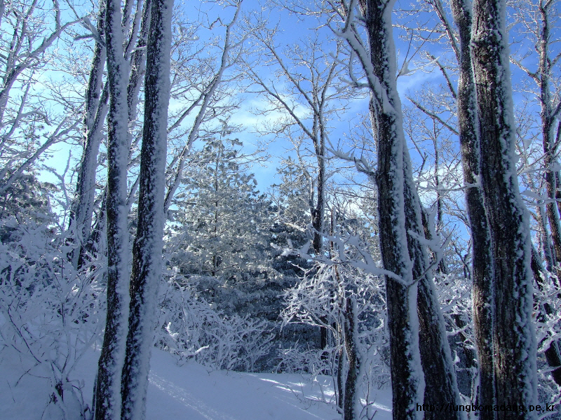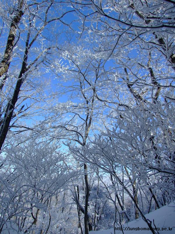 저 위에 능선에 하얀 상고대들이 나에게 빨리 오라고 재촉하는 듯 하다.