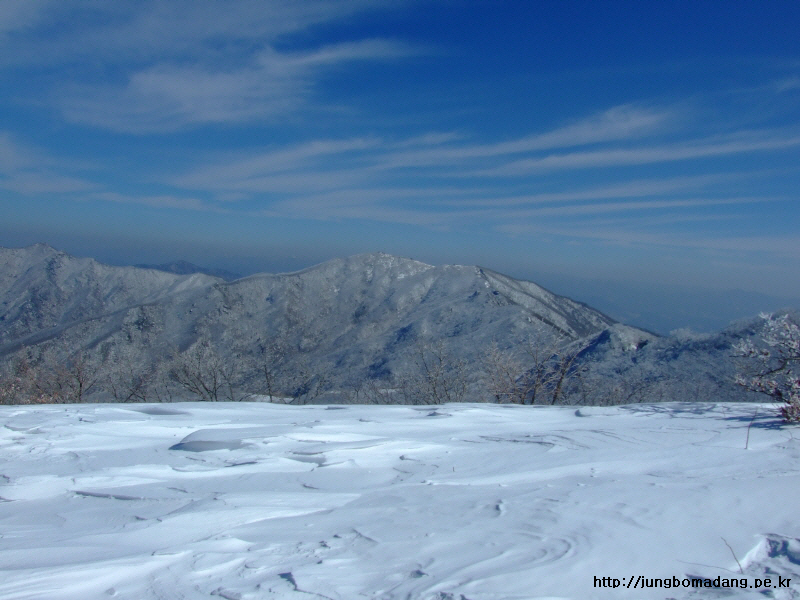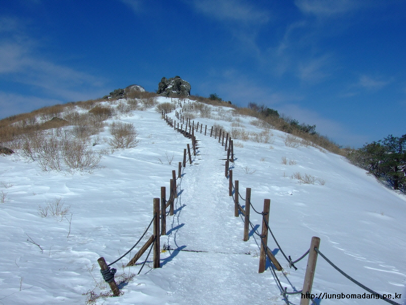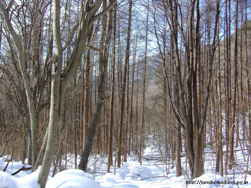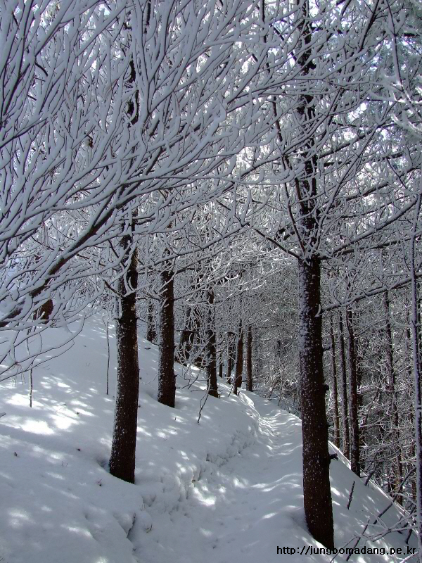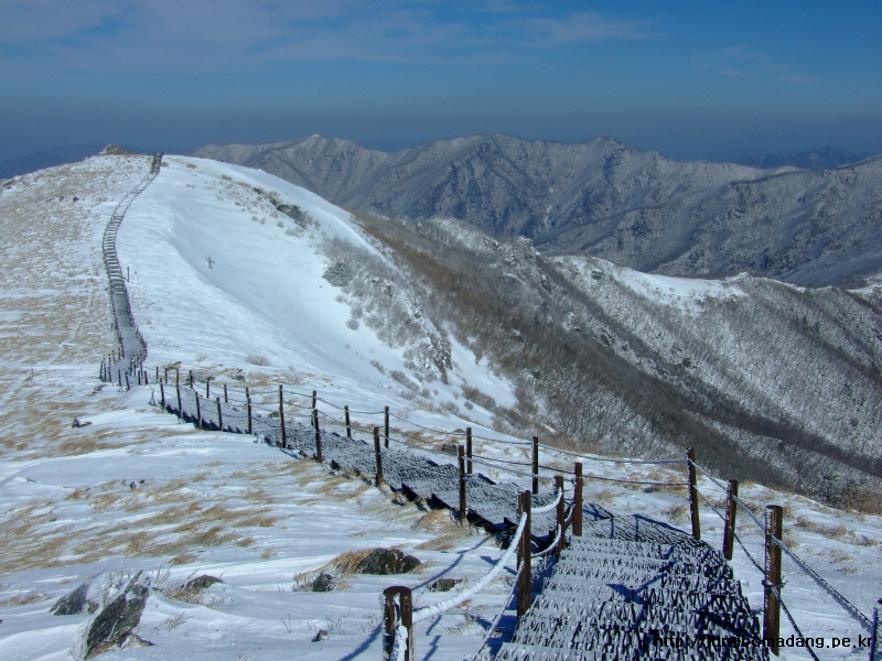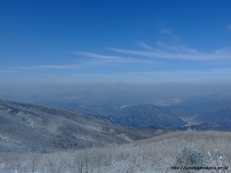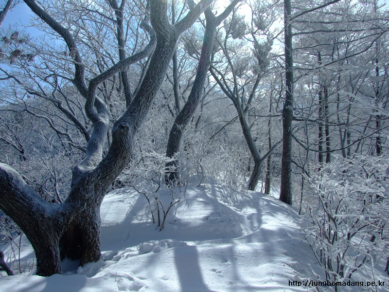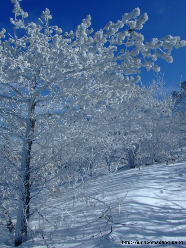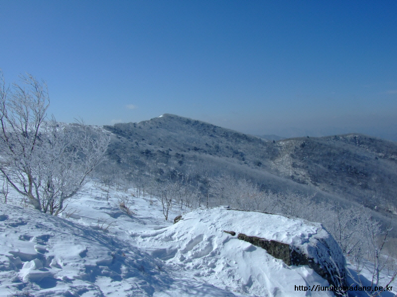 저 위에 능선에 하얀 상고대들이 나에게 빨리 오라고 재촉하는 듯 하다.