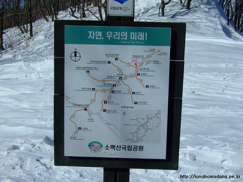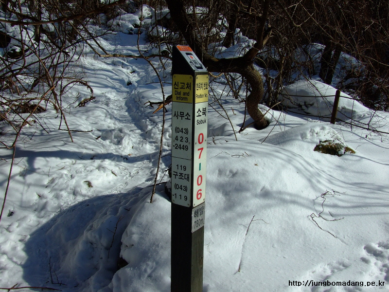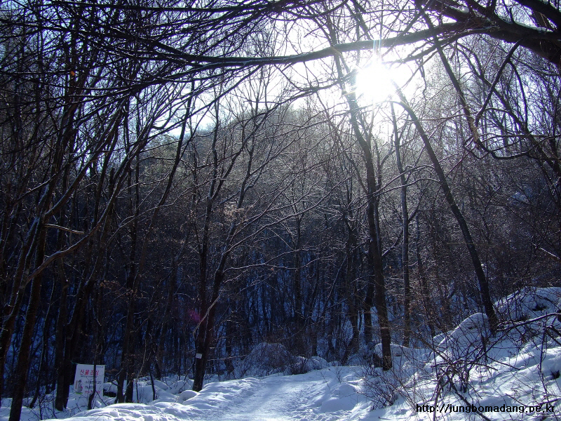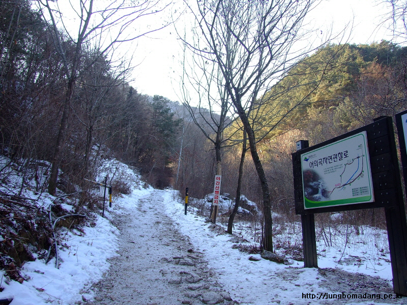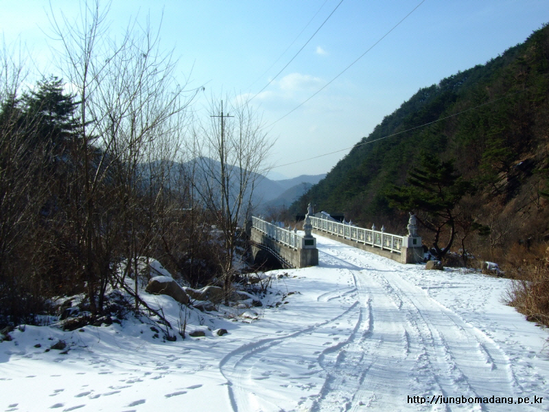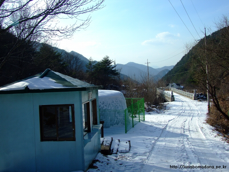 09:38 아직까지는 눈이 많지 않아 아이젠 없이도 진행 가능 하다. 사진에 통제소도 보이는 데, 다리를 건너가도 되고, 안그래도 되지만, 다리를 건너준다.
