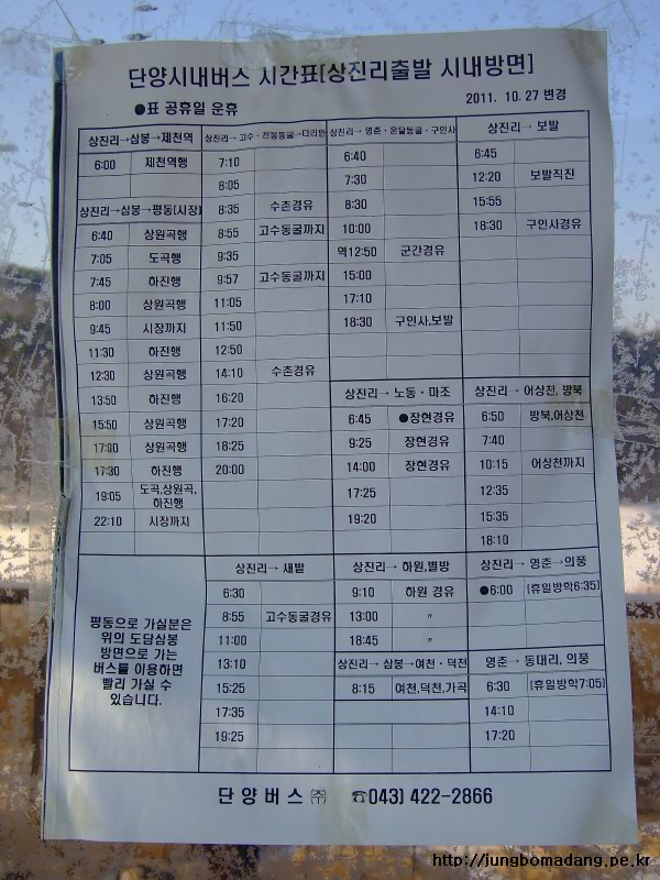 버스 시간을 보면 [상진리->새밭] 방향 버스를 타면 되고, 하루에 7회 운행되지만, 반드시 8시 55분 버스를 여기서 타야 한다.