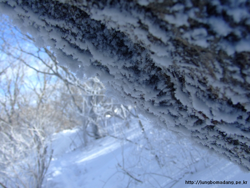 따땃하게 해가 비치는 곳은 상고대가 약간 녹거나 아예 없는 곳도 있다.