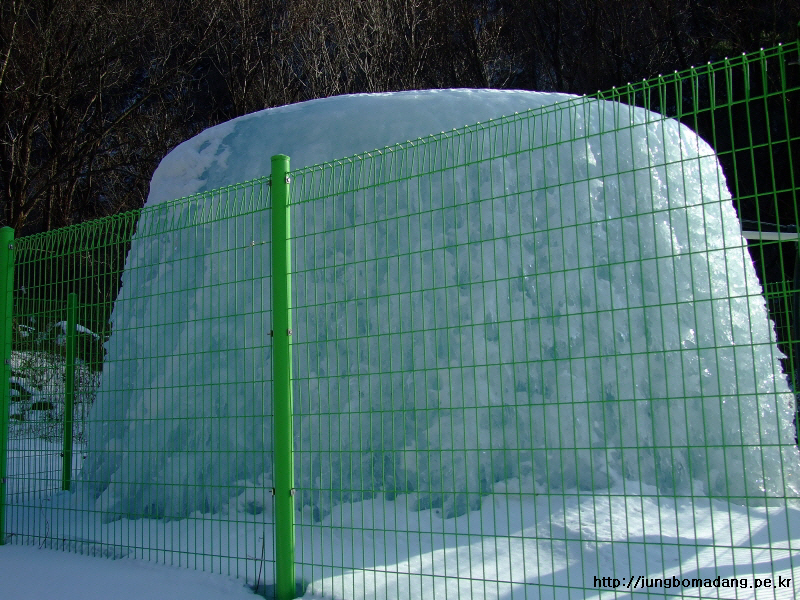 물탱크로 추정되는 것이 얼어서 터졌는지 멋진 장관을 연출하고 있다.