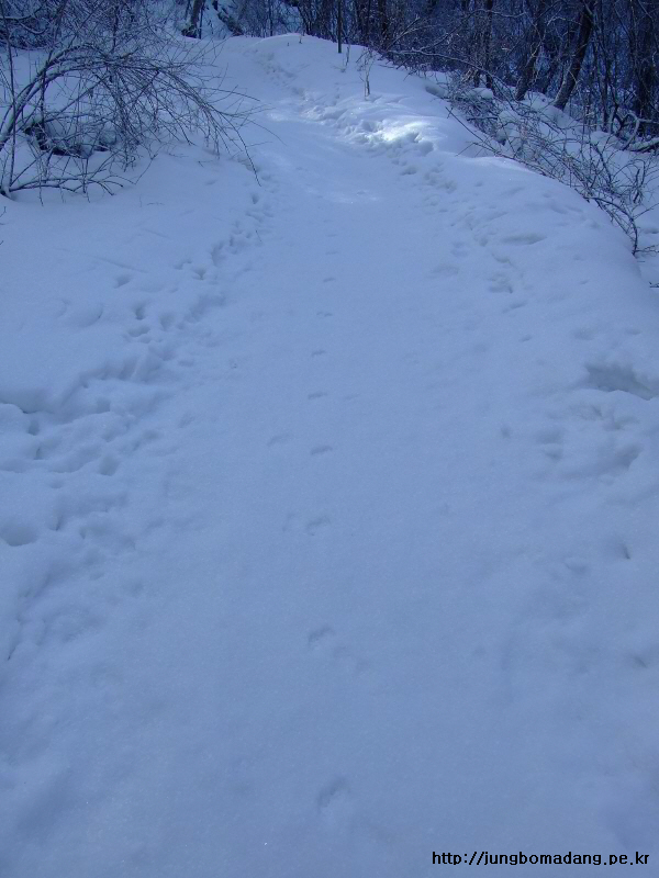 어젯밤에 눈이 살짝 내렸는지 새로온 눈이 살짝 덮혀있고, 중요한 것은, 내가 처음이다!