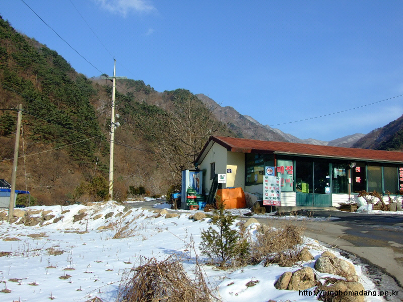 아래 사진은 비로봉식당으로 도로는 그 건물 좌측으로 계속 이어지고 끝에는 을전 통제소가 있다. 하지만 지금은 비로봉으로 가야하므로 반드시 식당을 보고 우측에 산길(등산로)를 이용해야 한다.