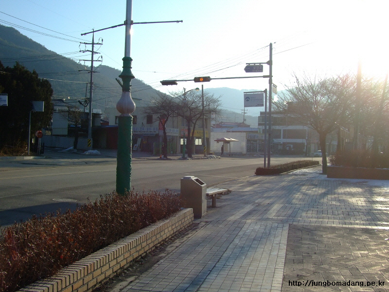 어이곡(이하 새밭계곡)까지 시내버스(8시 55분 버스를 꼭 이용해야함)를 이용하기 위해, 빠른 걸음으로 단양역을 나와서 도로 우측방향으로 갓길로 이동한다.