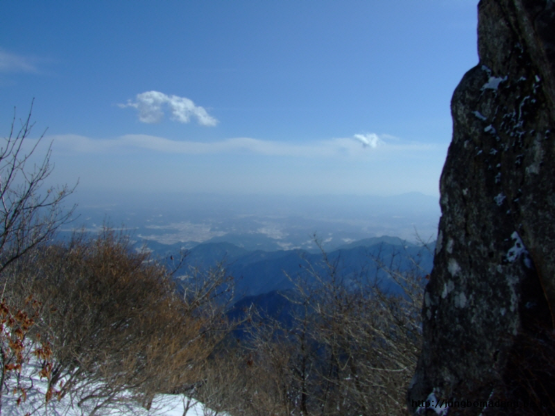 다행히 아주 명당(바위가 바람을 막아주는)자리가 있어 사발면 하나를 꿀맛같이 때워주고, 가져간 막걸리는 손도 못대고 그냥 국망봉으로 향한다.