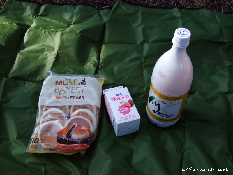 09:47 시작한지 얼마 안되어 끌다 지쳐 잠시 퍼집니다. 막걸리는 이거 샀노라 고하고 신선함 유지를 위해 배낭으로 쏙~. 남자라면 딸기우유죠!