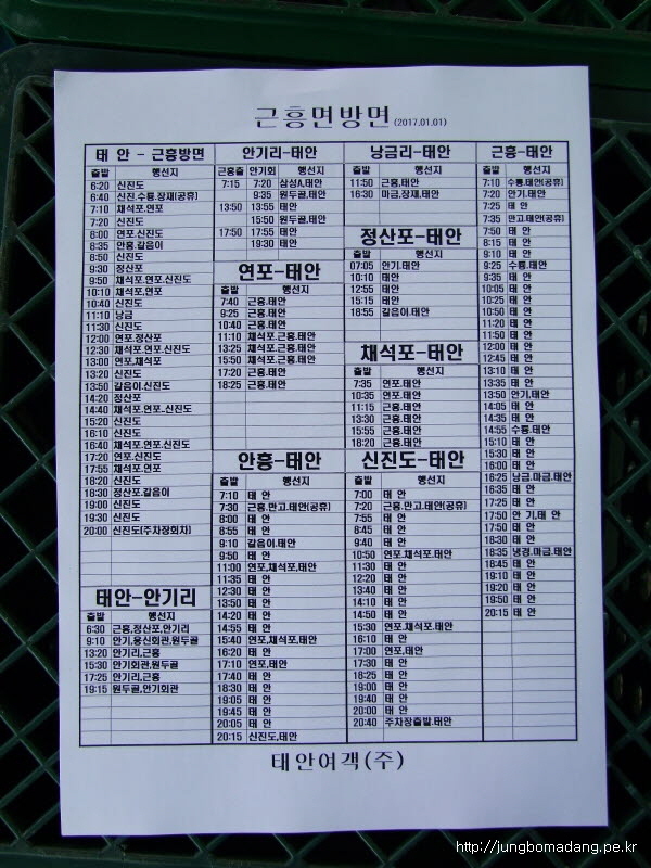 나오는 버스 시간표는 터미널 2층 태안여객에 가서 프린트물로 받아 옵니다. 휴일에는 아마 근무 안하지 싶은데... ㅎㅎ