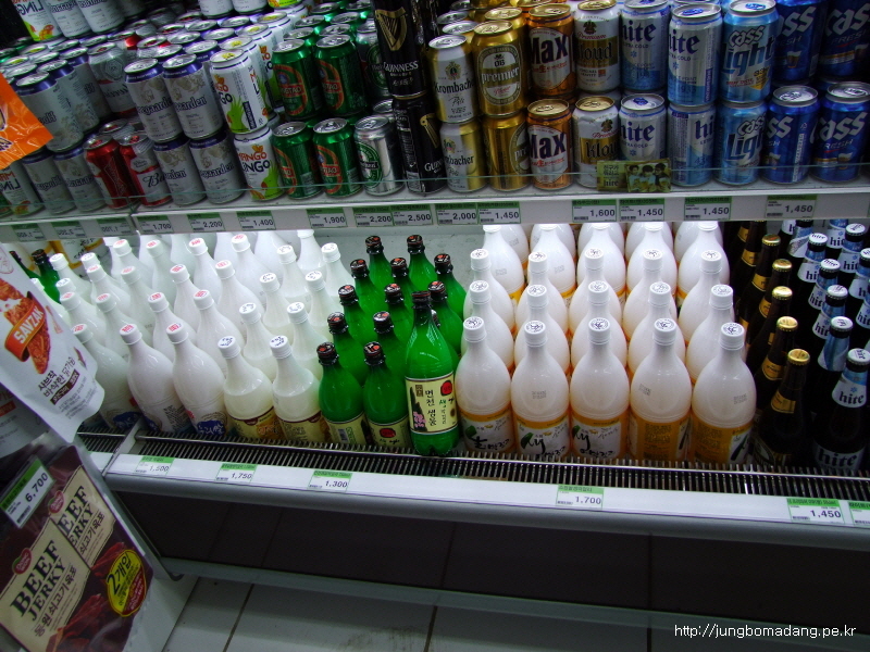 막걸리는 요러합니다. 우측에 주황색 1.2L 짜리 하나 삽니다. 그리고 미니꿀호떡도 사구요.