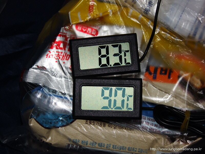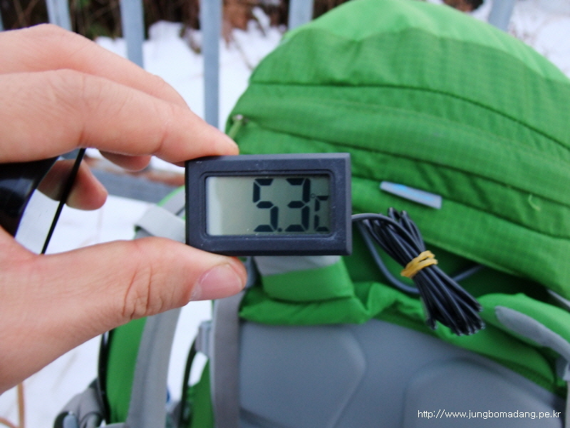 현재 기온은 바깥은 8.3도, 텐트안은 9도