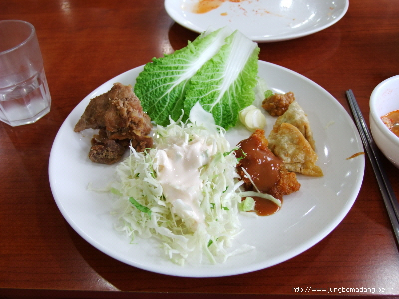 5000원짜리 부페식단입니다. 돼지고기도 있고 꽁치조림도 있네요.