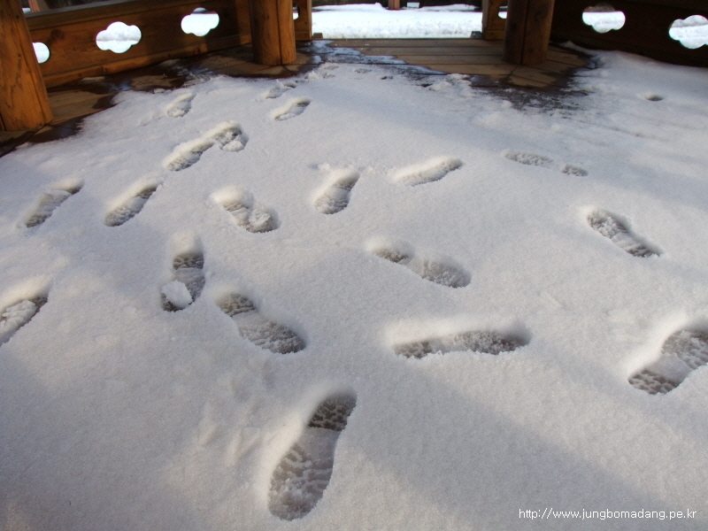정자 안에도 눈이 소복히 쌓여 있네요. ㅎㅎ