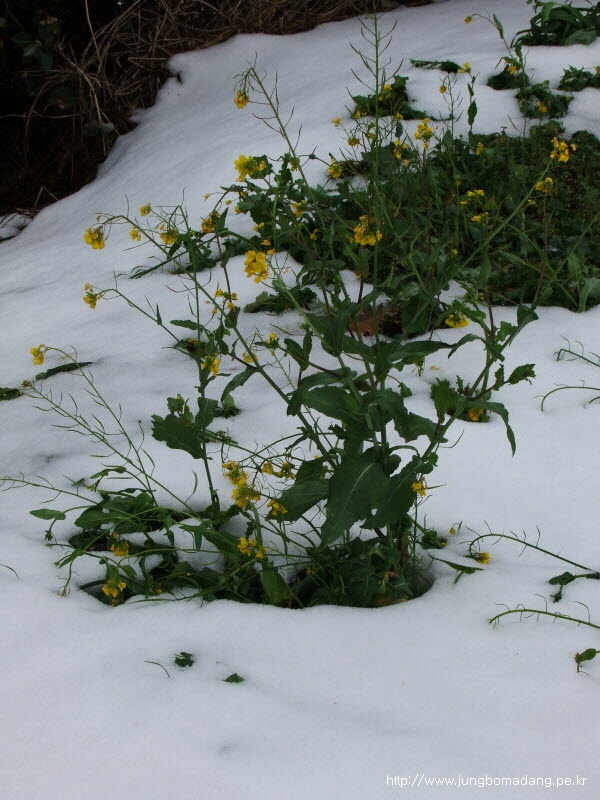눈 위로 유채라 시신기방기하네요.