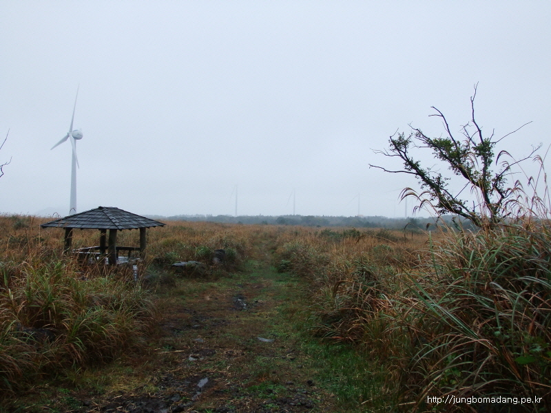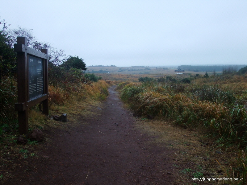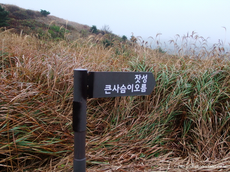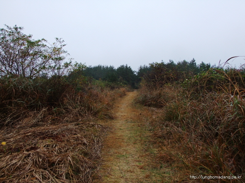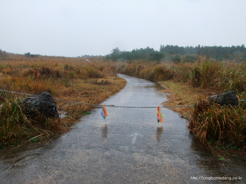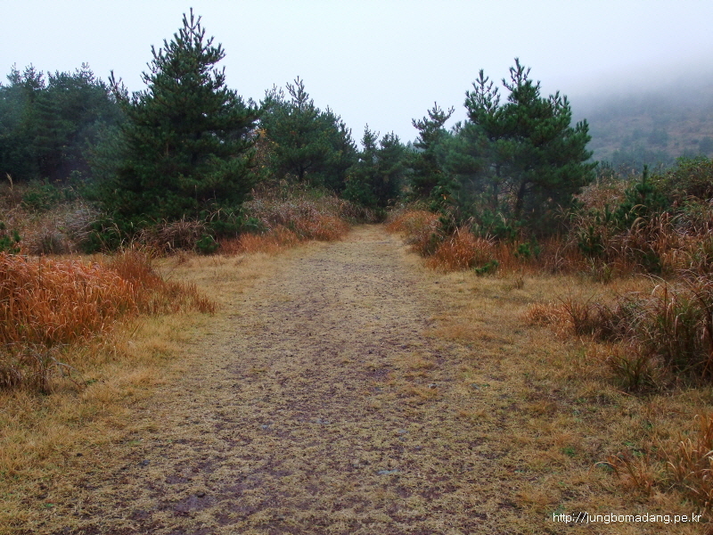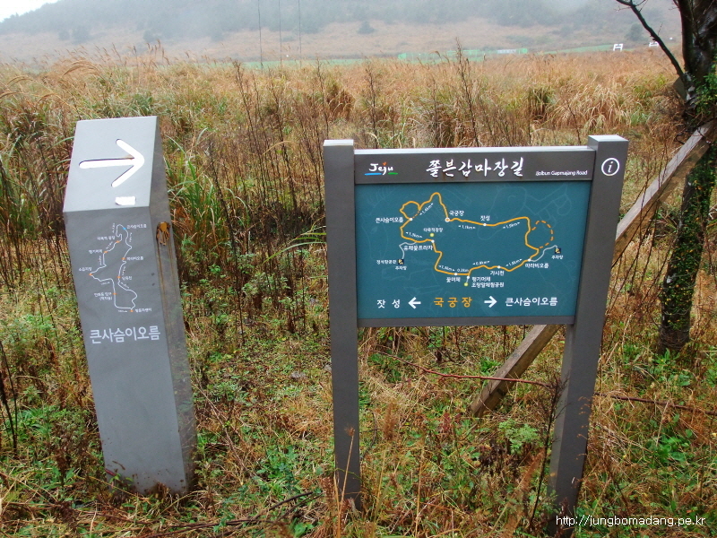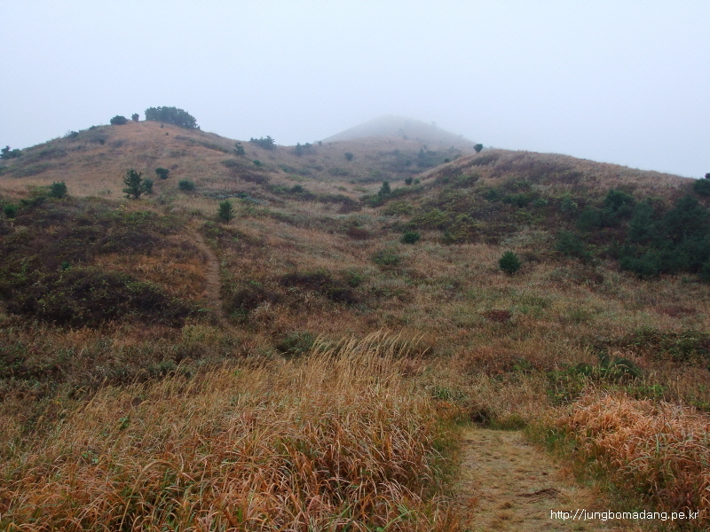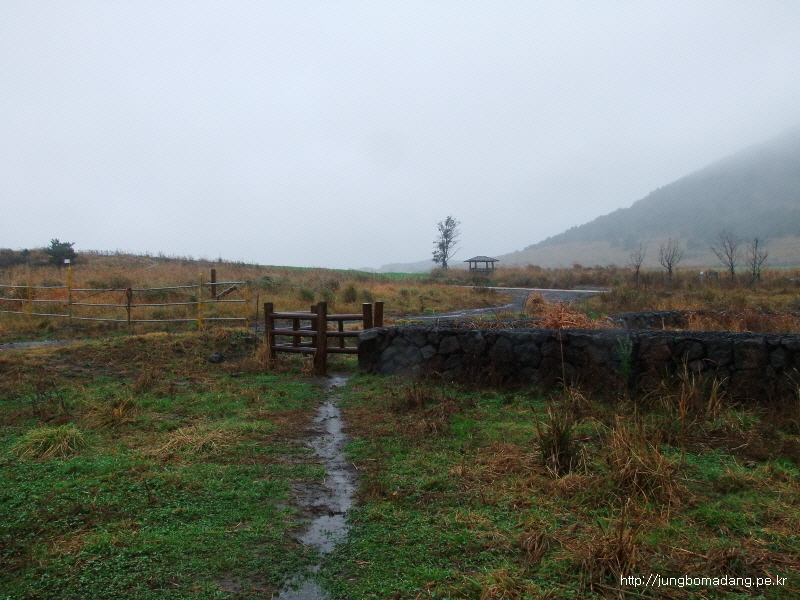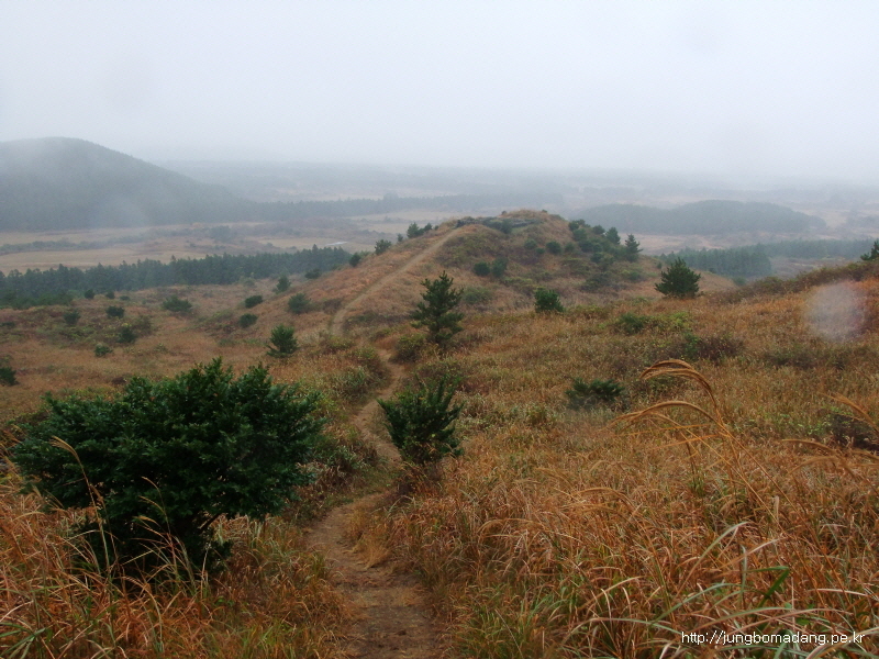 따라비오름 하산중이예요. 비바람땜시 한바꾸 못돌고 짧은 코스로 가네요. 따라비는 난이도 3.