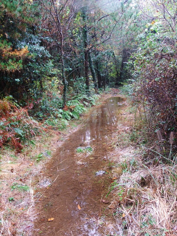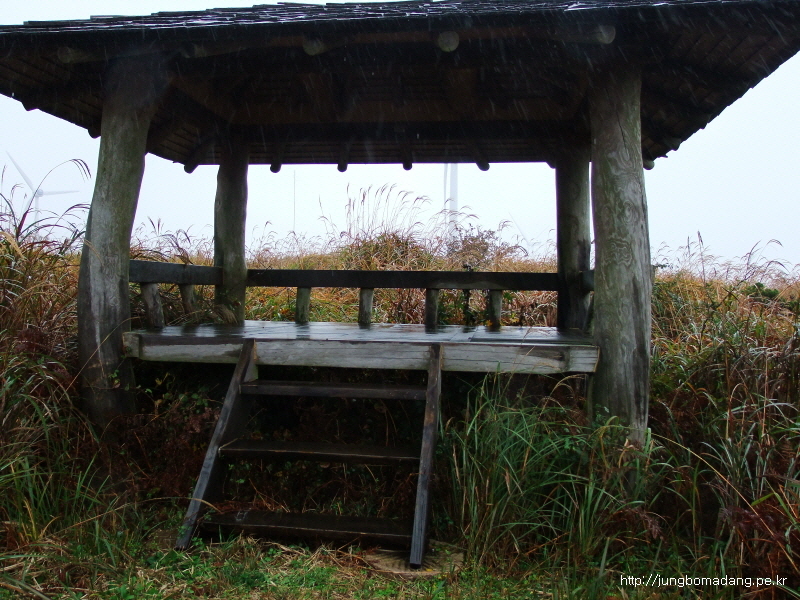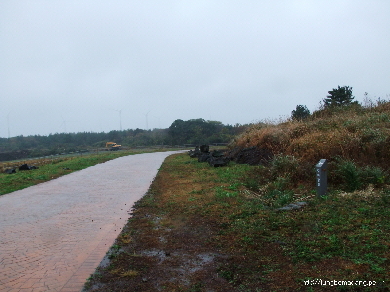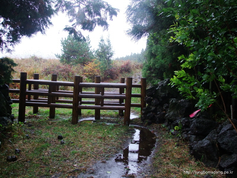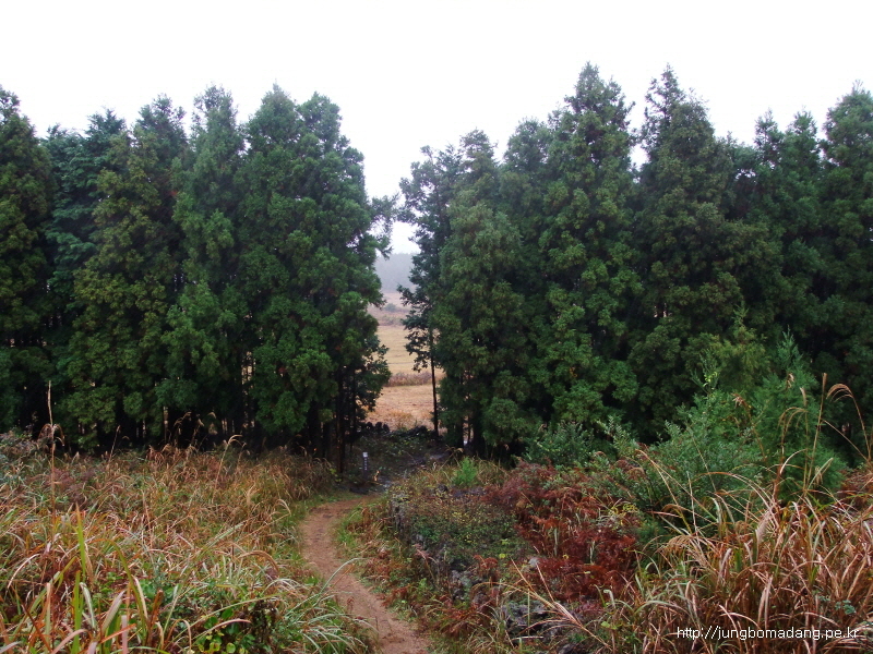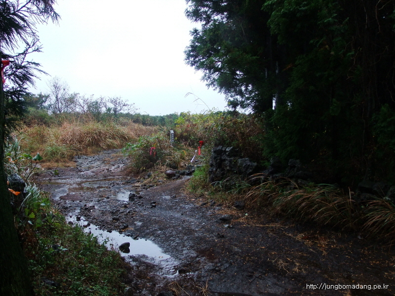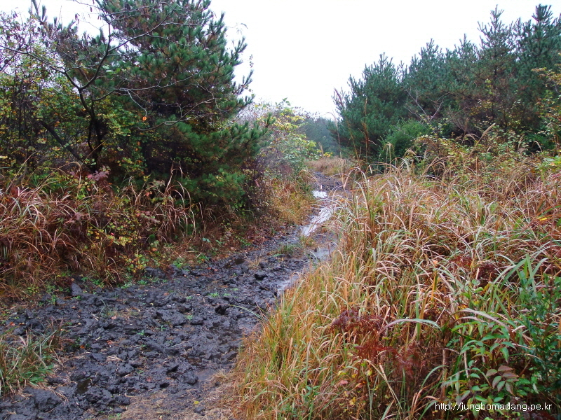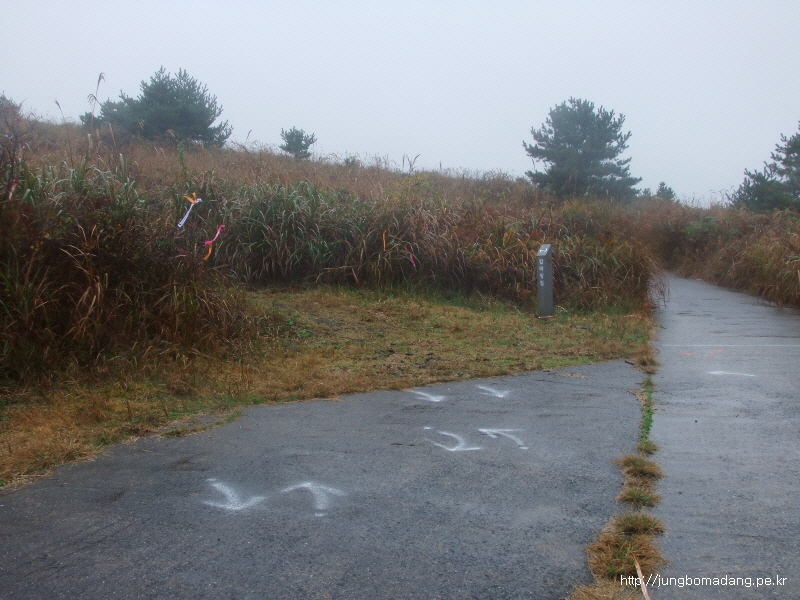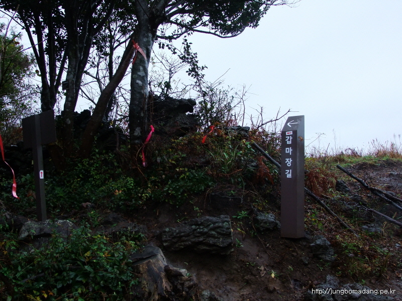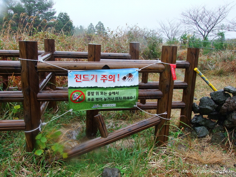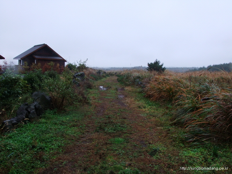 따라비오름 하산중이예요. 비바람땜시 한바꾸 못돌고 짧은 코스로 가네요. 따라비는 난이도 3.