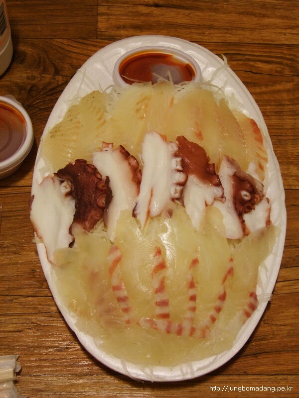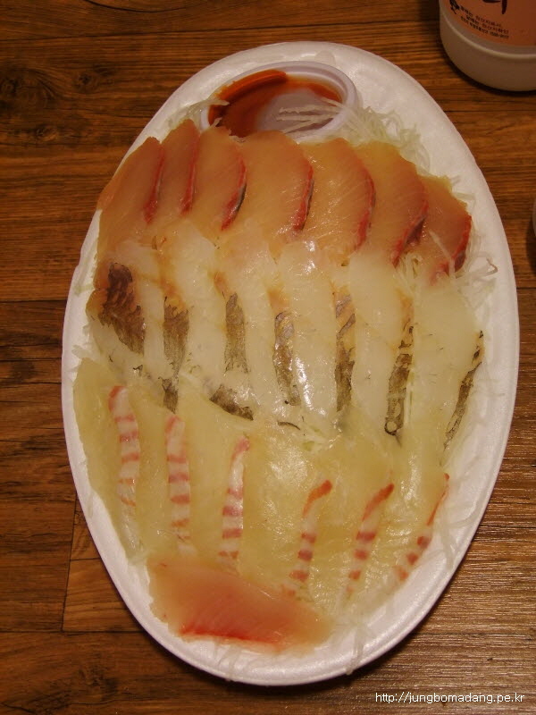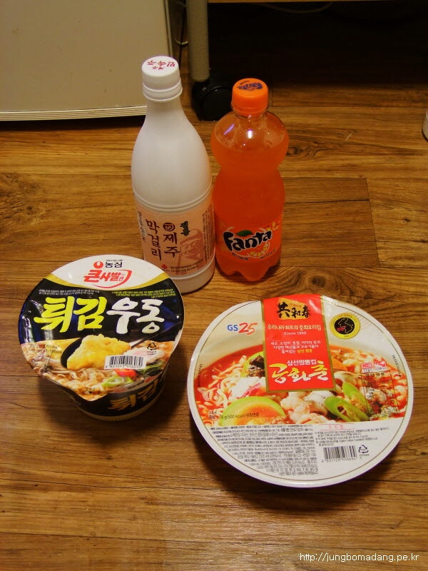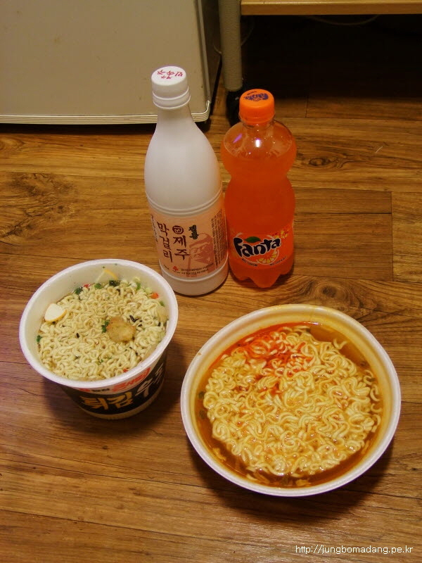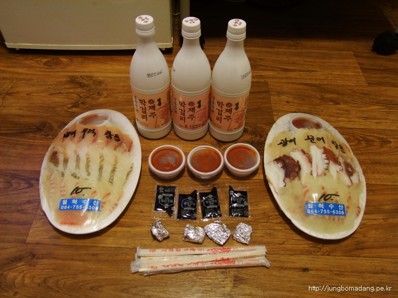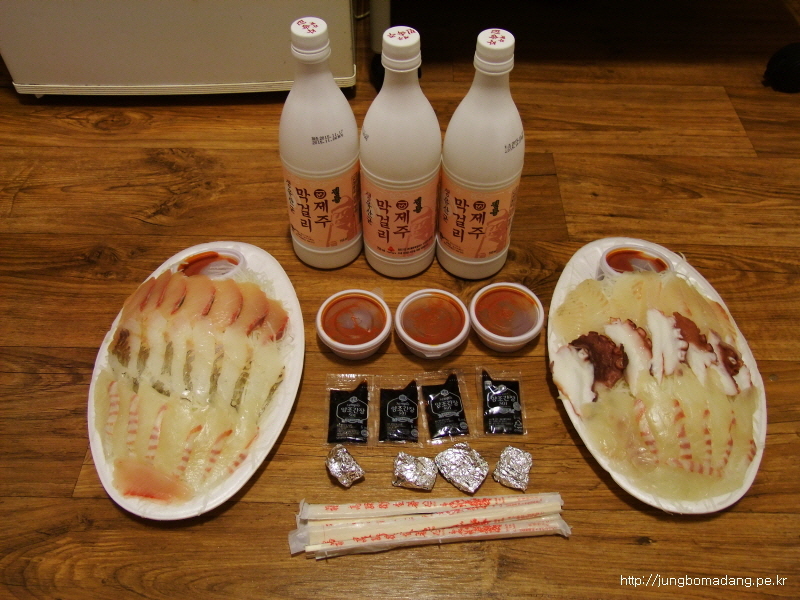 먹은것 : 막걸리 4병, 회 2팩, 환타, 컵라면 2개, 귤 1개.