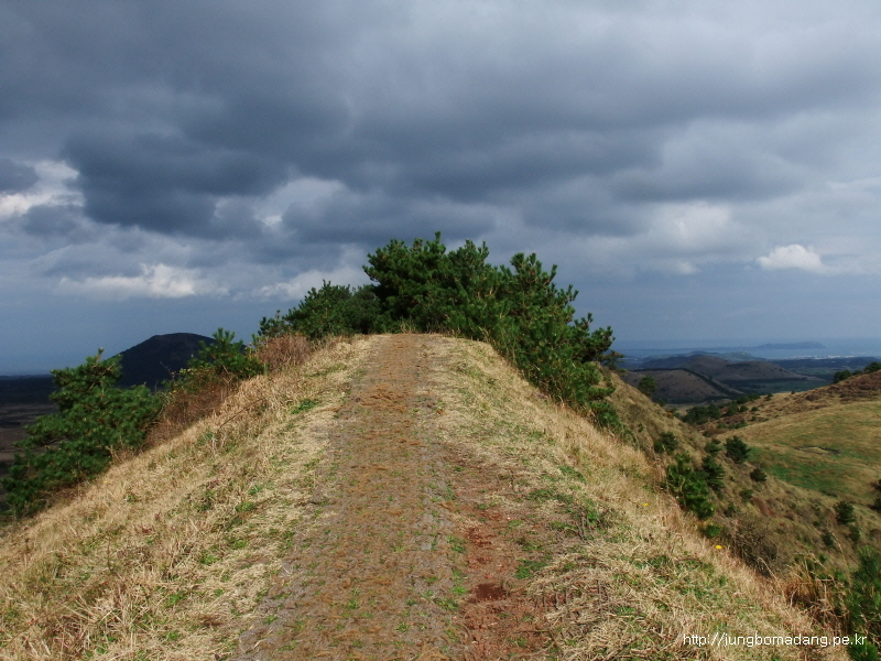 15:44 다시 높은오름 들어가는 도로로 되돌아 왔구요. 나오는 길에 비와서 우산쓰고 오는데 웬 승용차가 스더니 어디까지 가냐고, ㅠㅠ. 배낭이 젖어 감사하다고 인사만 하고 그냥 나왔네요. 이제 슬슬 잘곳도 찾음서 다음 오름으로 가야죠